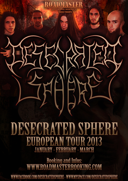 The Roadmaster Booking is announcing another partnership, this time with the Brazilian Technical Brutal Death Metal Band DESECRATED SPHERE. Entitled “Desecrated Sphere European Tour 2013”, the tour will be in January, February and March 2013. The tour aims to promote the album “The Unmasking Reality” which is fast gaining recognition by fans and the media, and is also indicated by various websites and magazines among the best releases of the year. DESECRATED SPHERE was also elected by the specialized media as a revelation artist of 2011.