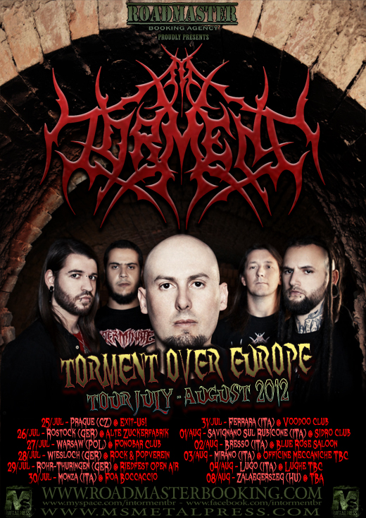 The Roadmaster Booking in partnership with MS Metal Press is pleased to announce the dates of the european tour of the brazilian Brutal Death Metal band IN TORMENT. Titled “Torment Over Europe 2012”, the tour aims to promote the second album “Paradoxical Visions of Emptiness”, and will pass through Czech Republic, Germany, Poland, Italy and Hungary. During the tour the band will perform alongside big names such as SUFFOCATION, ORIGIN, and DRI, and will be one of the headliners of the traditional German festival Riedfest Underground Metal Open Air along with SINISTER, DEMONICAL, among others.
