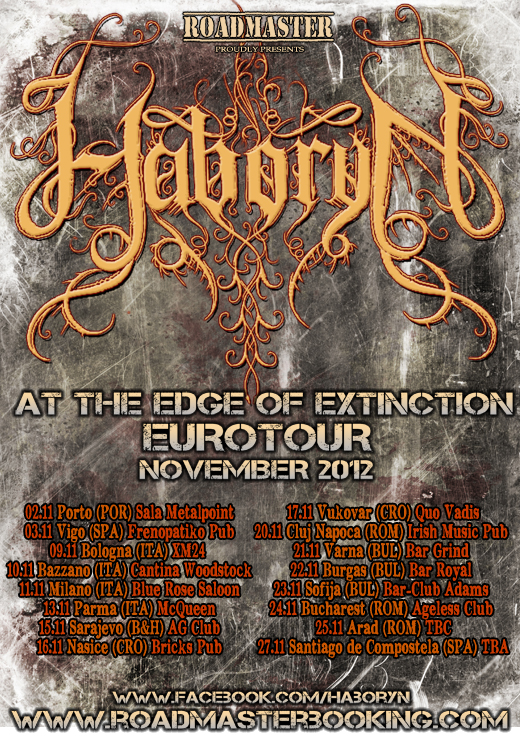 It is with great pleasure that Roadmaster Booking announces the dates of the European tours HABORYN (Ven). The Venezuelans will be doing their first European Tour, to promote its new album “At the Edge of Extinction”. The tour includes 16 shows in 7 countries: Portugal, Spain, Italy, Bosnia, Croatia, Romania and Bulgaria.