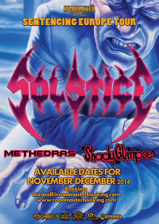 É com imenso orgulho que a agência Roadmaster Booking anuncia a primeira turnê européia de um dos maiores representantes da cena Death/Thrash Old School da Florida, o SOLSTICE. A turnê será em novembro e dezembro de 2014 e contará também com os italianos METHEDRAS e os japoneses SHADY GLIMPSE.