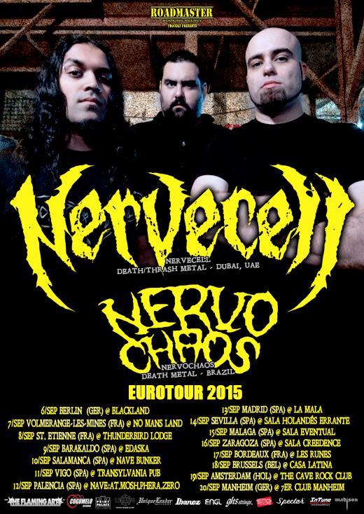 We are proud to announce that we are – in partnership with The Flaming Arts – booking the upcoming Eurotour of the most prominent extreme band to arise from Middle East, NERVECELL. The tour will also count with the Brazilian Death Metal veterans of NERVOCHAOS.